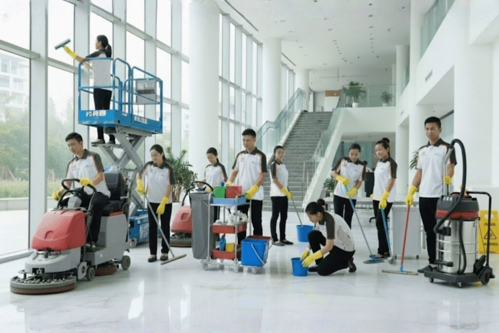 Sebagai penyedia Facility Services yang berpengalaman, kami berupaya mendukung setiap klien agar dapat berfokus pada kegiatan utama perusahaan. Kami memastikan seluruh proses kebersihan berjalan aman, efisien, dan terkelola dengan standar tinggi.